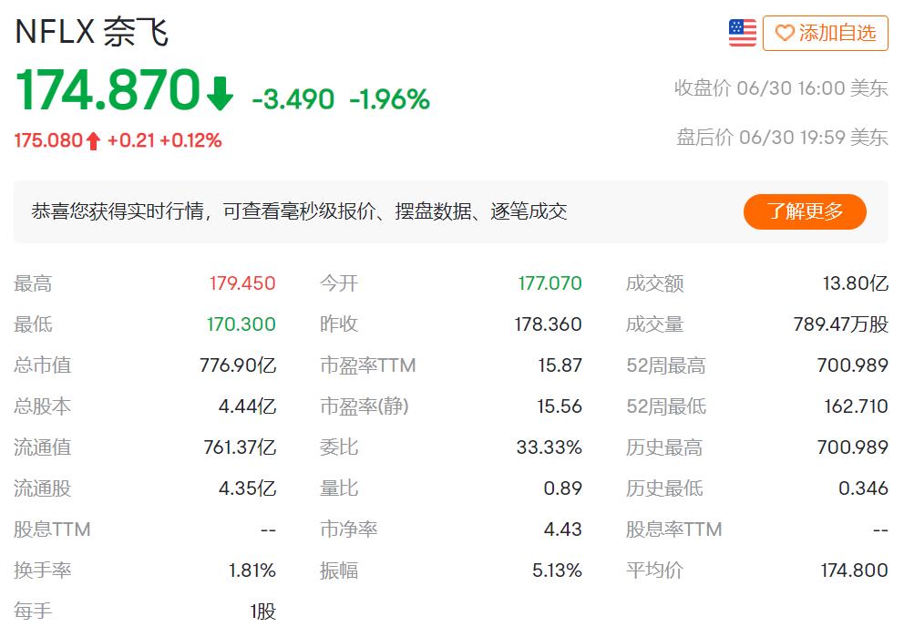 受业绩增速放缓与成本端的压力,2022年来,奈飞的焦虑反映在了跌跌不休的股价上,截至发稿前,奈飞股价累计跌幅近七成,目前市值仅为776.9亿美元。