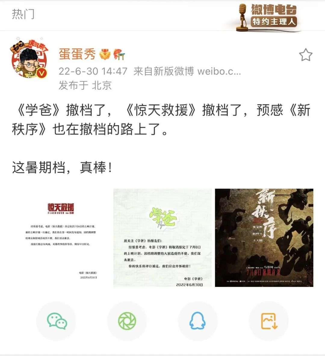 “暑期档这么空,为啥还要撤啊!”在某微博电影大V 的评论区,很多关注电影行业的网友们疑问道。至于这次集体撤档的原因,多位从业者对毒眸(ID:DomoreDumou)表示,是因为这些影片还没有拿到《电影公映许可证》。