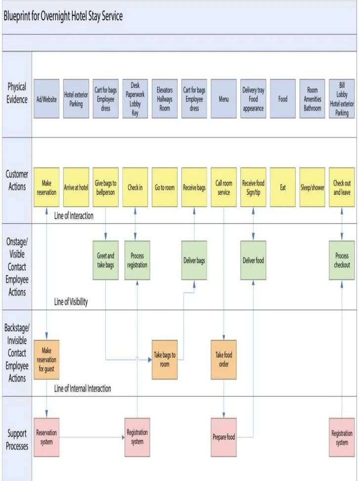 可视边界线分割了前台服务和后台服务,后台服务是说消费者看不到,但是支持前台服务的技术、方案和后台员工,比如餐厅背后的厨师、客房背后的打扫等。