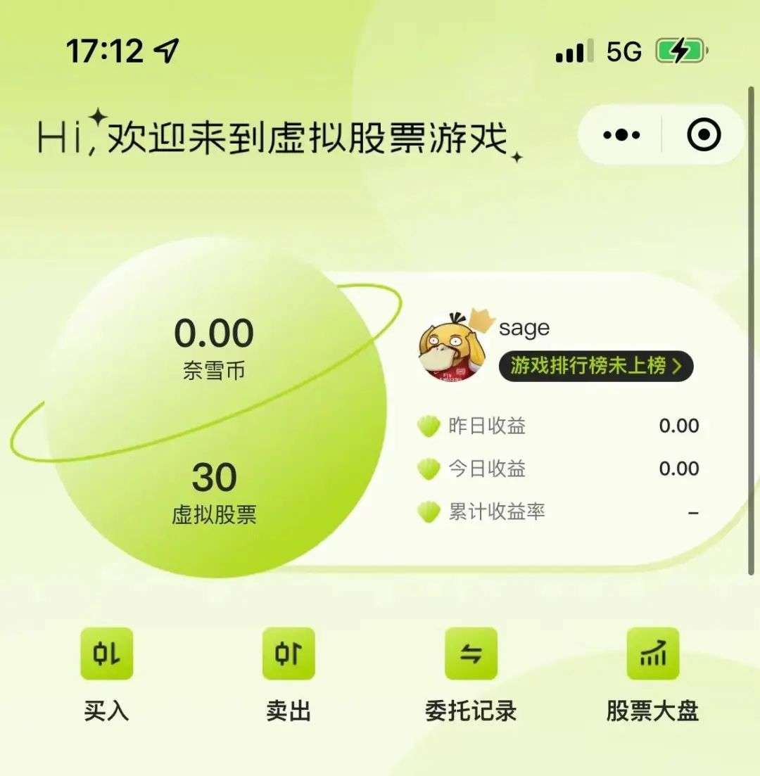 截至发稿,现实中奈雪的茶股票每股 6.65 港币。如果是买一杯奶茶送一股股票,那奈雪的茶底裤都要亏没了,市值还得接着跌。但好在,这只是一个借用了股市外壳的小游戏,说是给你送股票,其实就是送积分。
