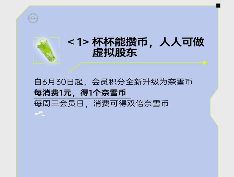 这个时候,奈雪的茶石破天惊,用股票代替积分,把股市玩法引入会员体系,降维打击了原本陈旧的玩法。奈雪是这么介绍这个玩法的: