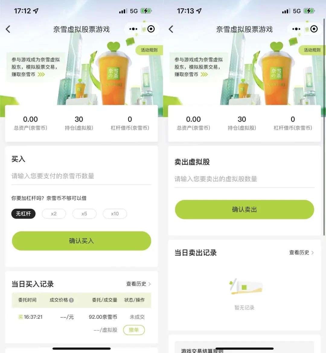 是的,除了最开始活动的 3 天,想要得到股票都得买。奈雪用奈雪币代替了真实的钱,让你用完全不沾钱的方式完成虚拟股票的交易。