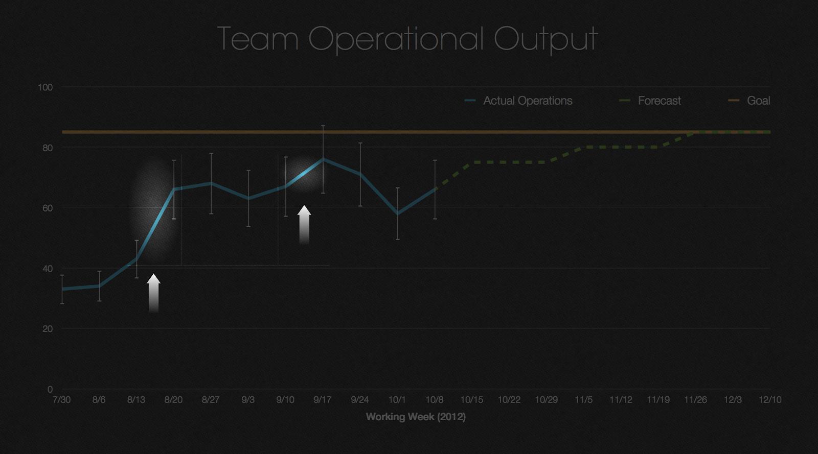 这就是为什么花大量的时间来优化团队每天所看的数据仪表盘是如此重要的活动。如果你能使他们头脑中的逻辑尽可能简单易懂,就能带来巨大的绩效收益,并最终推动你的团队产出。