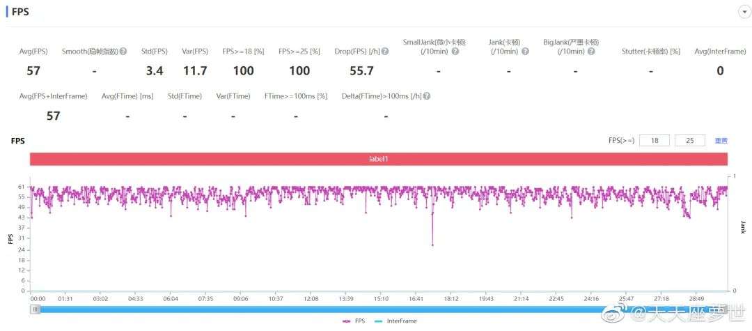 从结果而言,搭载骁龙8+的小米12S Ultra可以算得上是稳玩《原神》:平均帧率来到了57帧,主要帧率波动范围都在50帧到60帧之间,距离完全拉成一条直线还有些空间,但波动幅度小而且可以长时间稳定运行。半小时游戏后波动变化比较小,这在之前的旗舰机上很难见到。