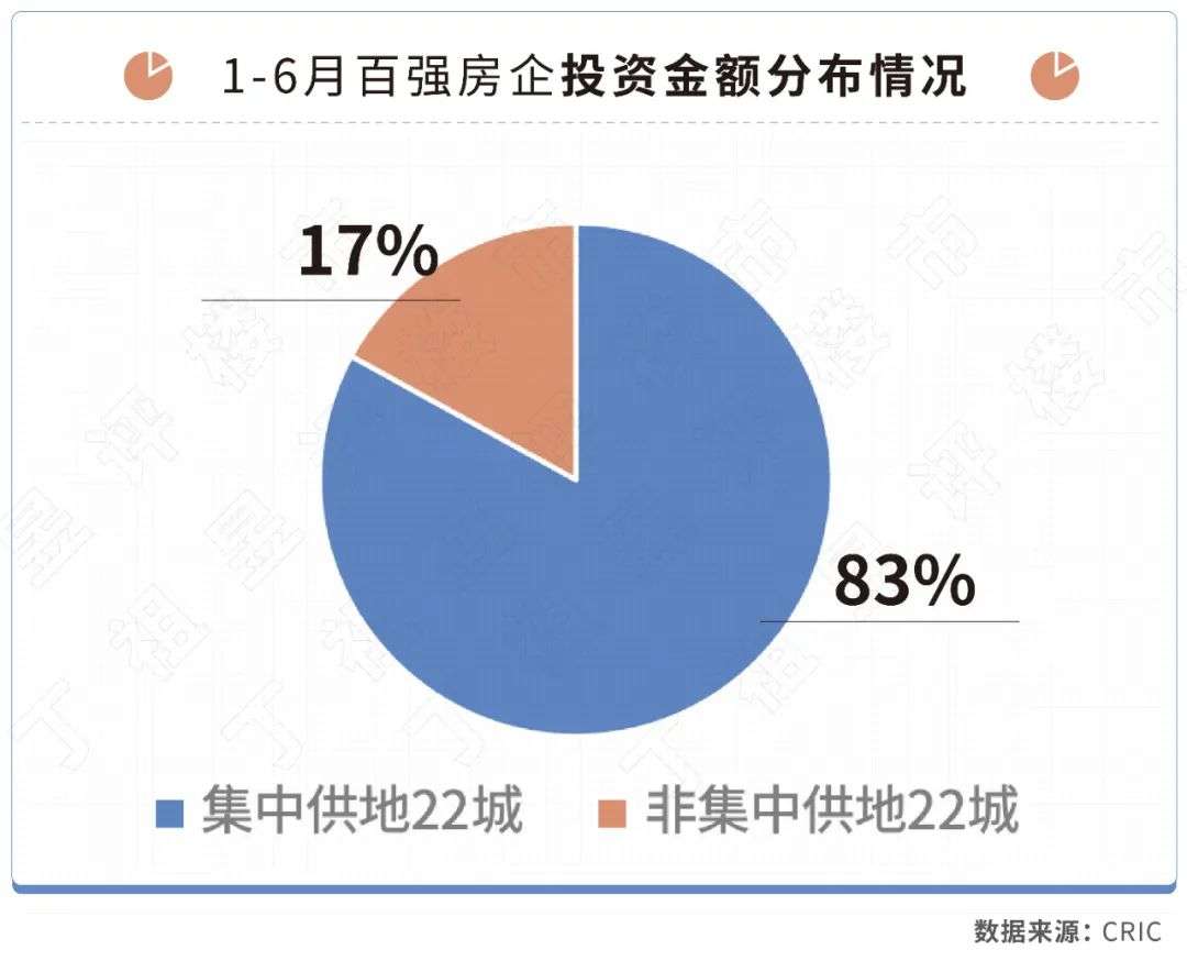 截至6月末,百强房企投资金额的83%集中于22城,22城以外仅占17%,百强房企对于核心城市以外的投资可谓“慎之又慎”。