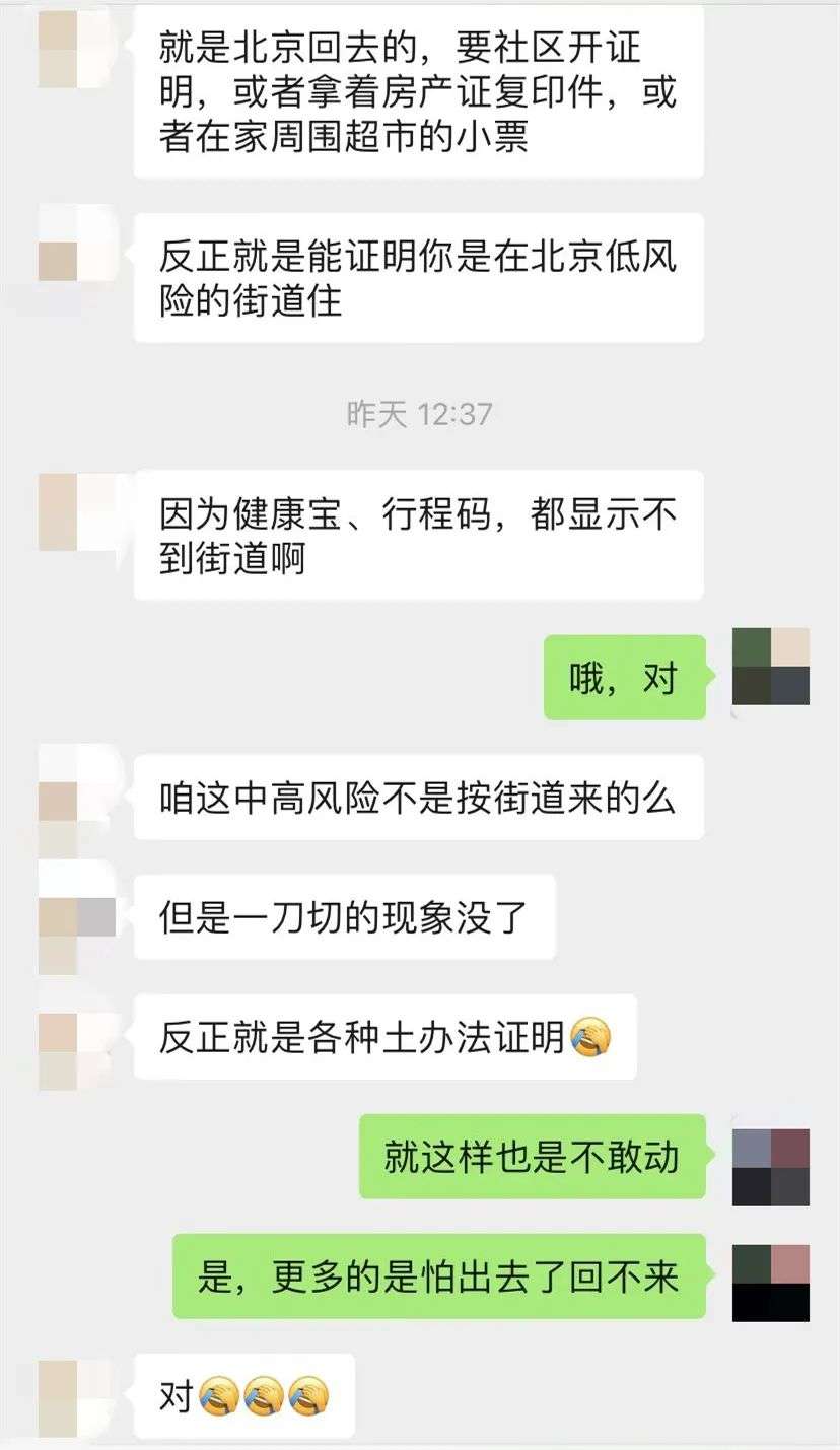 在29日之后,当地已经不再一刀切强制隔离了,但又出了新的土办法,从北京回当地的人,要么是北京居住地社区开证明,要么带着房产证复印件,甚至是要最近在家周边超市购物的小票,只为证明你不是风险街道来的。老周也决定,至少要等到十一再决定是不是要回老家看看。