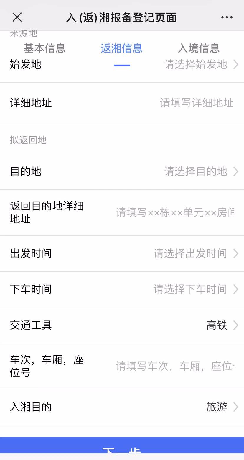 以湖南为例,需要注册“湖南省居民健康卡”并进行“入湘”登记,需详细填写行程,内容包括:目的地详细地址,出发地详细地址,在长驻留地点,抵离日期、驻留时间时长等信息。