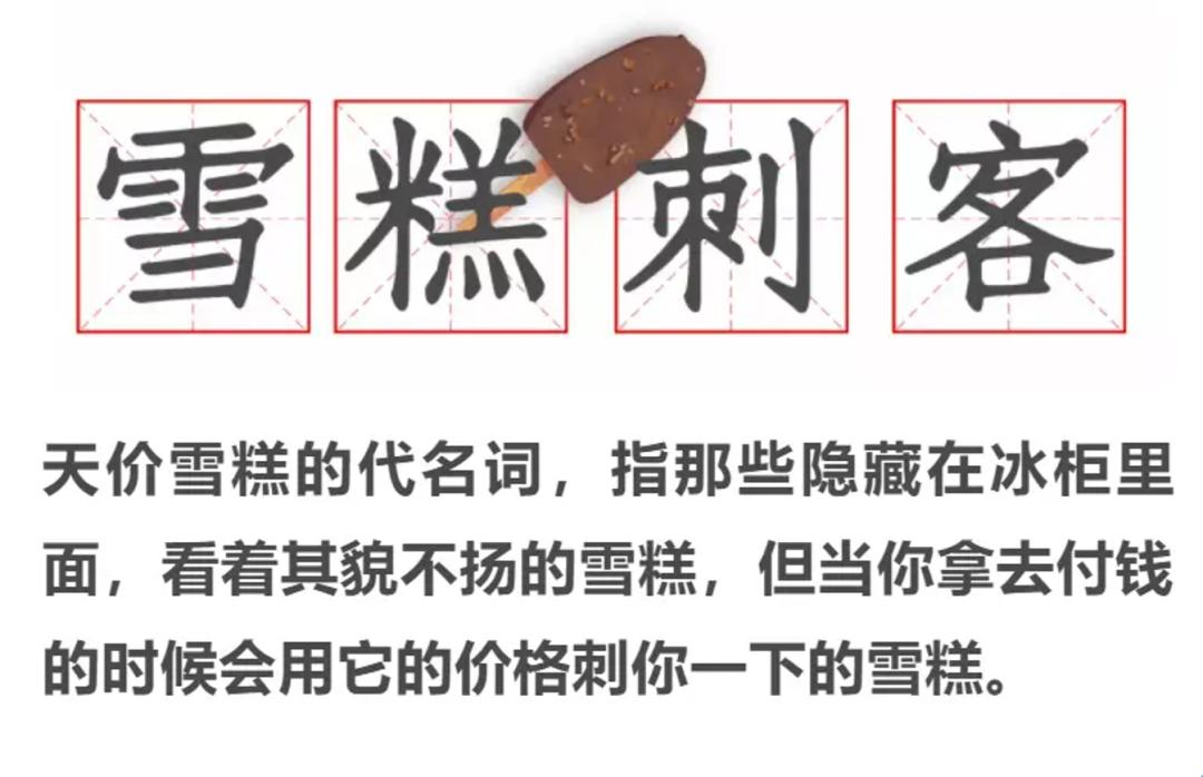 今年夏天最火的词叫:雪糕刺客。指的是那些隐藏在冰柜里面,看着其貌不扬的雪糕。当你拿着它们去付钱的时候,它会用它的价格刺你一剑。