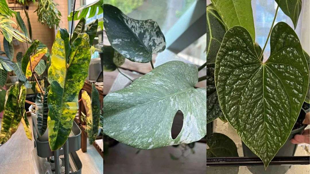 以龟背竹为例,价格500-1000元的白锦龟背竹是入门款,再往上是黄锦龟背竹、洒金龟背竹、白怪兽龟背竹,价格依次递增,如果锦化程度均匀,比如以叶茎为中心一半绿一半白的阴阳锦,比较少见且很难复刻,一片叶子的价格就在一万元左右。