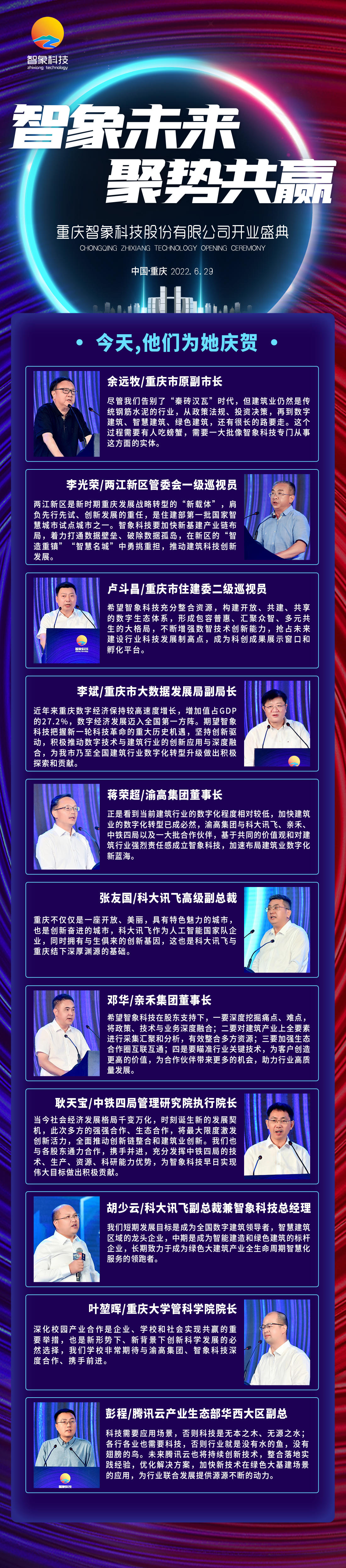 6月29日,重庆两江新区打破传统发展模式成功招商引资试点示范——重庆智象科技股份有限公司(以下简称“智象科技”)宣告成立。以下为开业盛典上,嘉宾发言精选。