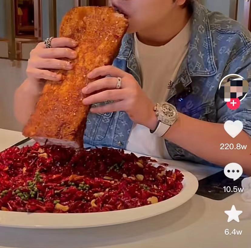 在抖音、快手、B站等短视频平台上,关于脆皮五花肉的宣传视频非常多,十个美食博主中有八九个可能都安利过脆皮五花肉。视频里博主一口下去发出的“咔嚓”声,以及溢出嘴边的油花,无不刺激着屏幕面前网友的味蕾。
