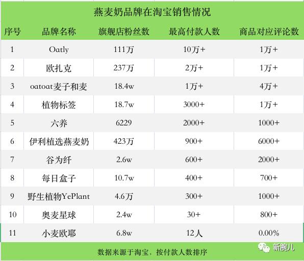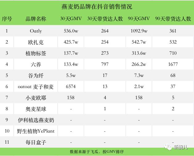 新腕整理了两份燕麦奶品牌在淘宝和抖音销售表,以Oatly线上业务情况作为参照,这些品牌经营情况如何?