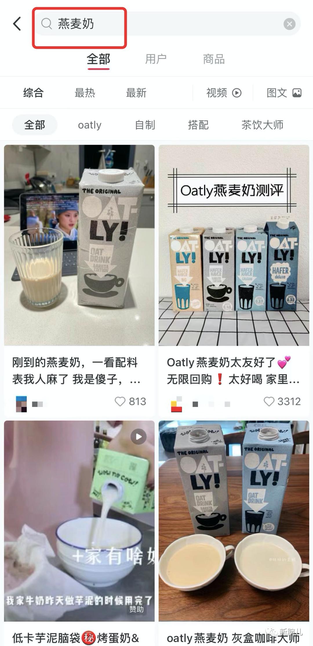 综合淘宝和抖音数据,Oatly已完全占据国内燕麦奶线上零售市场。另外,新腕在小红书搜索燕麦奶,最先出现Oatly,已经成为燕麦奶品类代名词。在此情况下,别的品牌只能通过营销手段,以出圈。