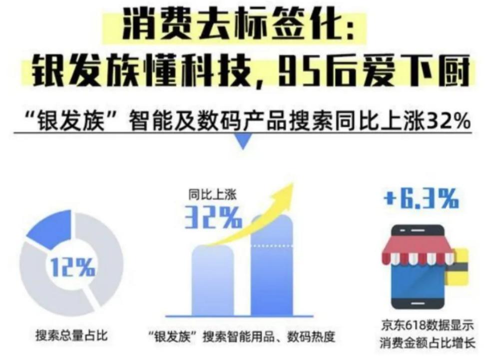 百度联合京东发布的《“6·18”消费趋势洞察报告》显示,2022年以来,“银发族”搜索“智能用品、数码产品”相关内容的搜索占比提升至12%,搜索热度同比上涨32%。今年“6·18”购买智能用品、数码产品的消费者中,“银发族”的消费金额占比增长达6.3%。