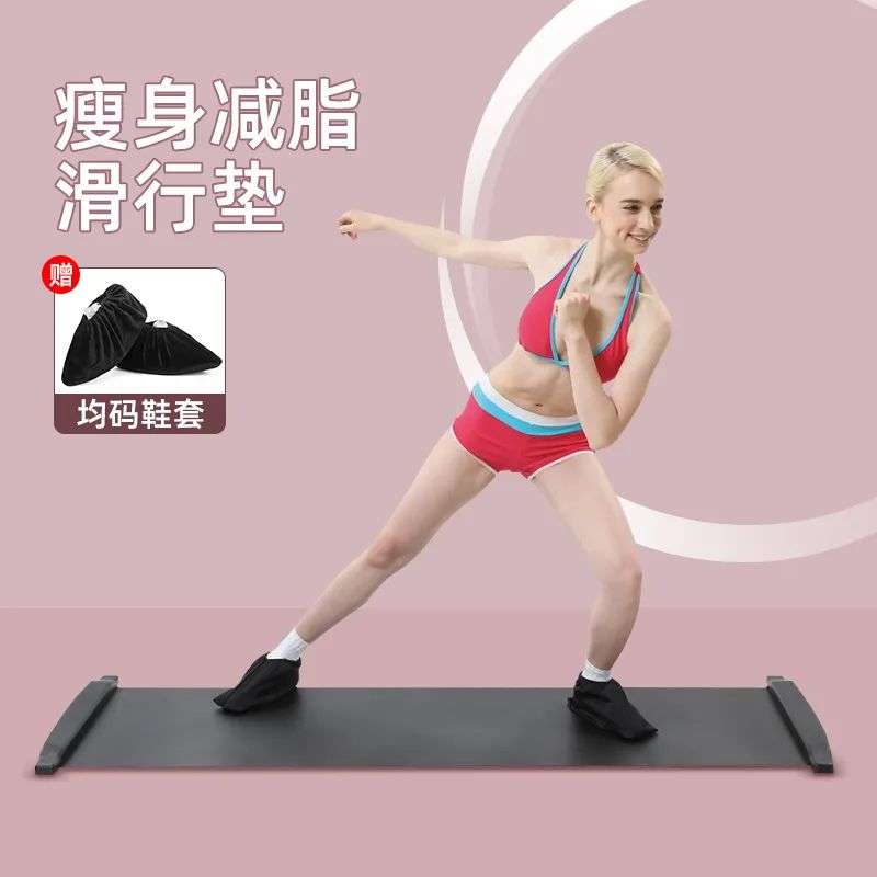 滑行垫正是其一,在抖音、小红书上,都能看到人穿着鞋套在滑行垫上左右滑动,动作容易让人联想到速滑,不仅可以独自居家锻炼,还能见到健身房推出滑行垫减脂塑形团课。为了缩小空间,又衍生出了滑行盘之类的产品。