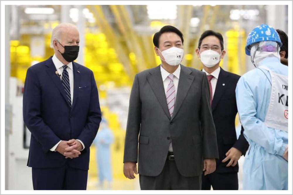 5月20日,拜登专机刚落地,就匆匆赶往首尔以南70公里外的全球最大半导体工厂——三星平泽厂,参观3纳米芯片。