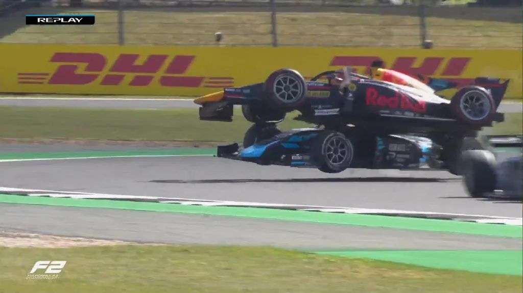 其实,在F1银石站开幕前的“垫场赛”——F2的比赛中,尼萨尼防守豪格时发生擦碰,导致豪格右前胎爆胎之后失控,随后豪格的赛车撞到路肩并“腾空起飞”,径直撞到了在过弯的尼萨尼。Halo保护了尼萨尼的头免于受到撞击!两位车手都平安无事地离开了赛车!