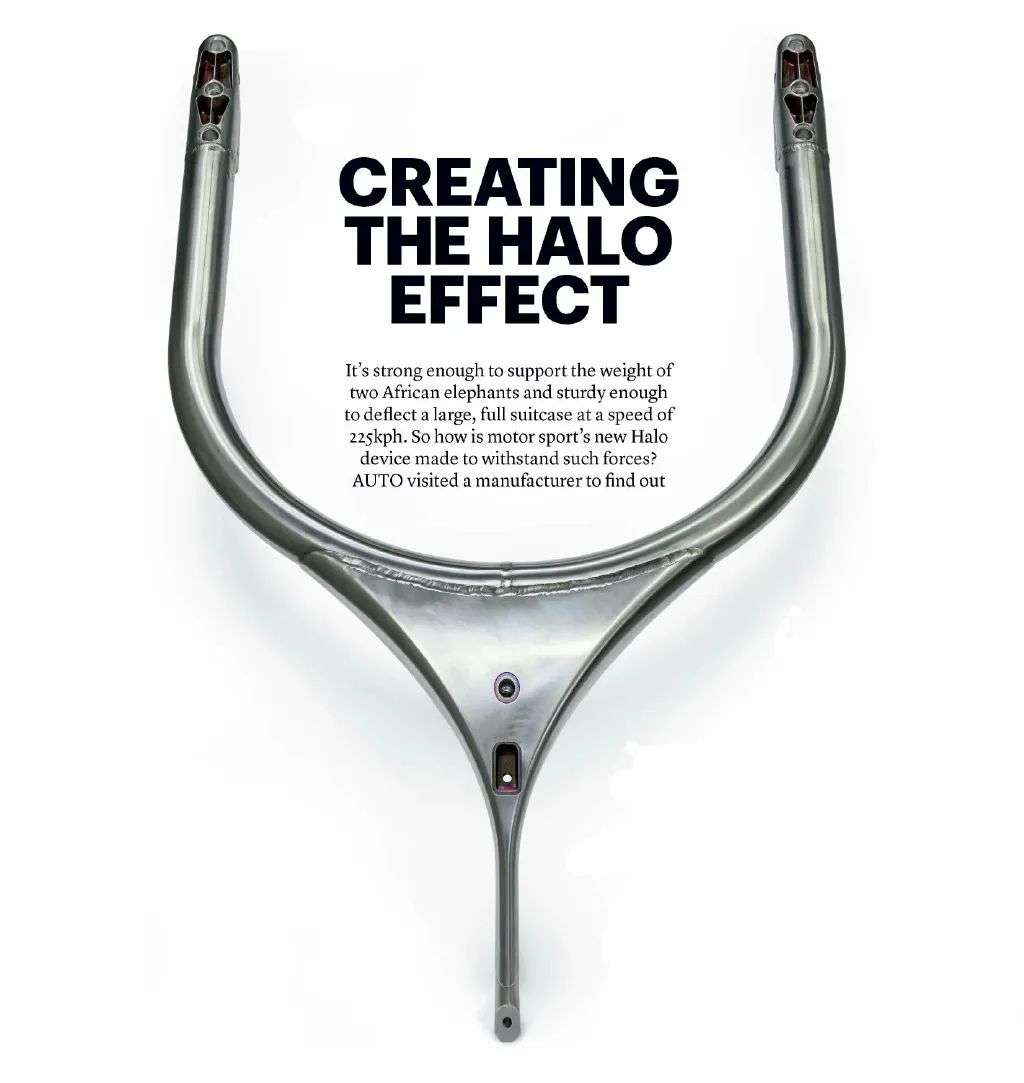 Halo以三点连接到车身,仅重9公斤,可承受约12000 公斤的重量(垂直和横向),由用于航空航天工业和人造骨骼的5级钛(Ti-6Al-4V)制成,整个Halo被分为5个部件,在无菌室中通过非常复杂的过程焊接在一起 ,单个Halo采购价格大约是1.5万欧元。