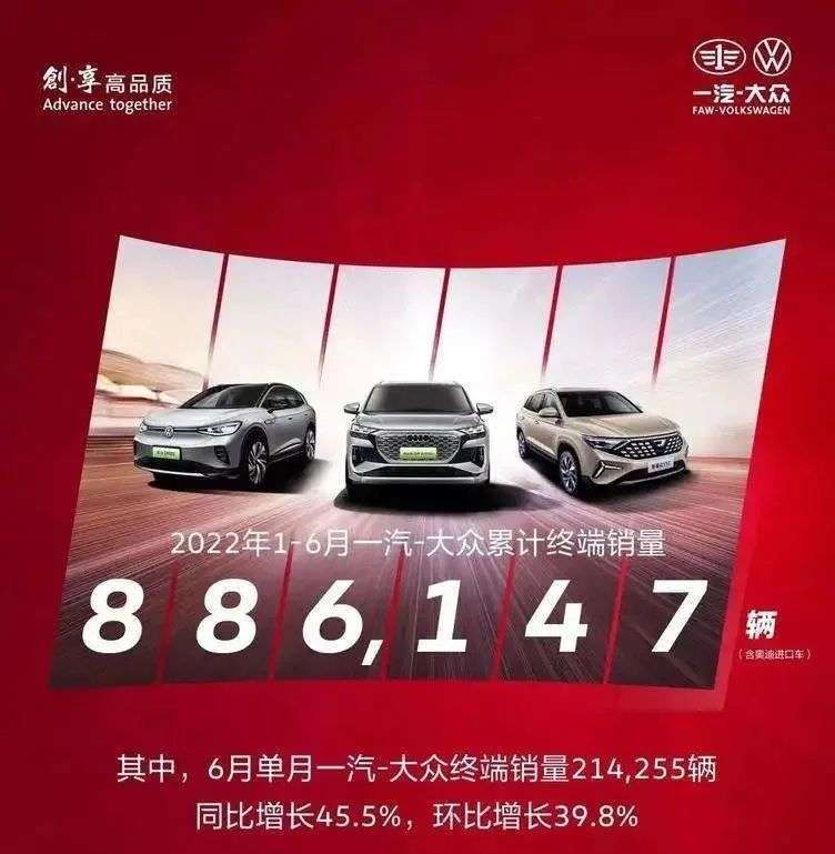 6 月,一汽大众(含奥迪)卖了 21 万辆,广汽丰田销量同样破 10 万,一看销量真的猛。