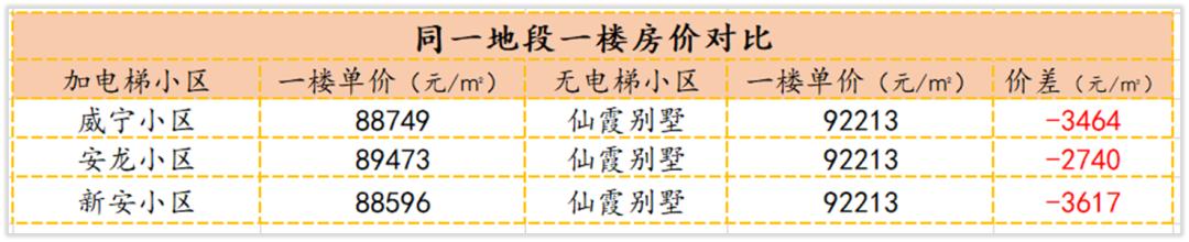 同地段的一楼,加了电梯反而比没有加电梯的小区价格更低,这样一来也就是相对贬值。
