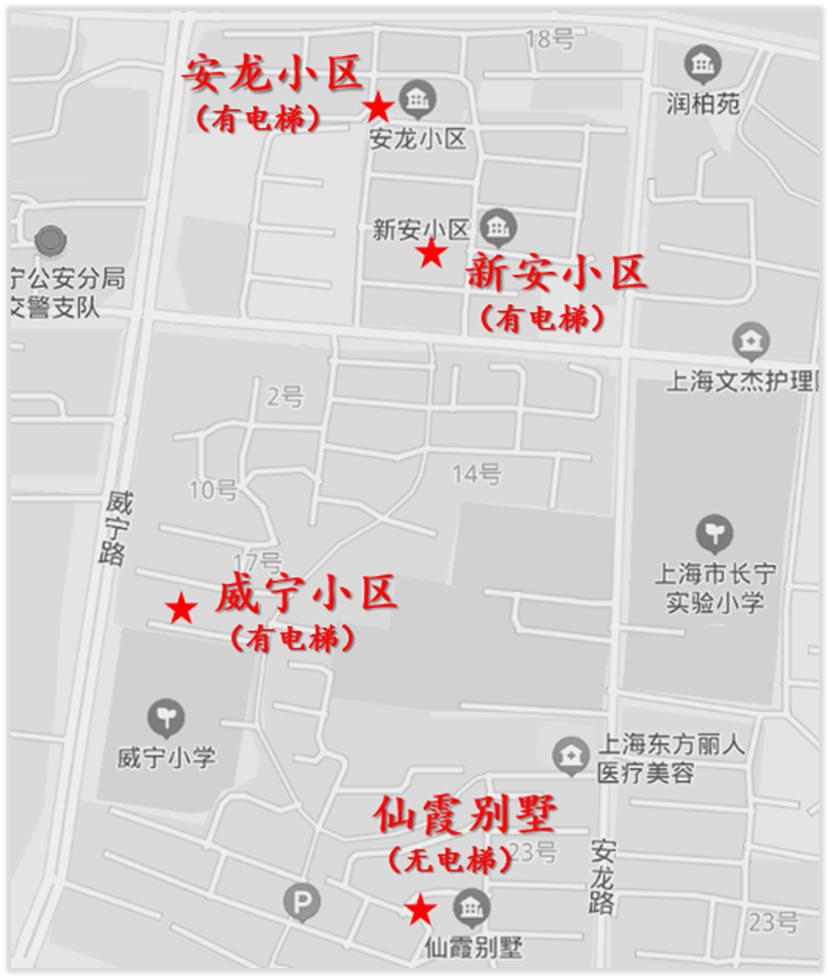 其中安龙小区、新安小区和威宁小区是加了电梯的,仙霞别墅目前还没有加装电梯。