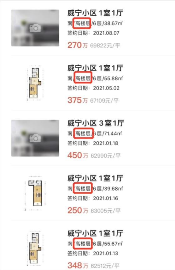 查了一下这个小区历史成交情况,一打开发现最近成交的几乎都是高楼层(5楼、6楼),一楼很少很少。