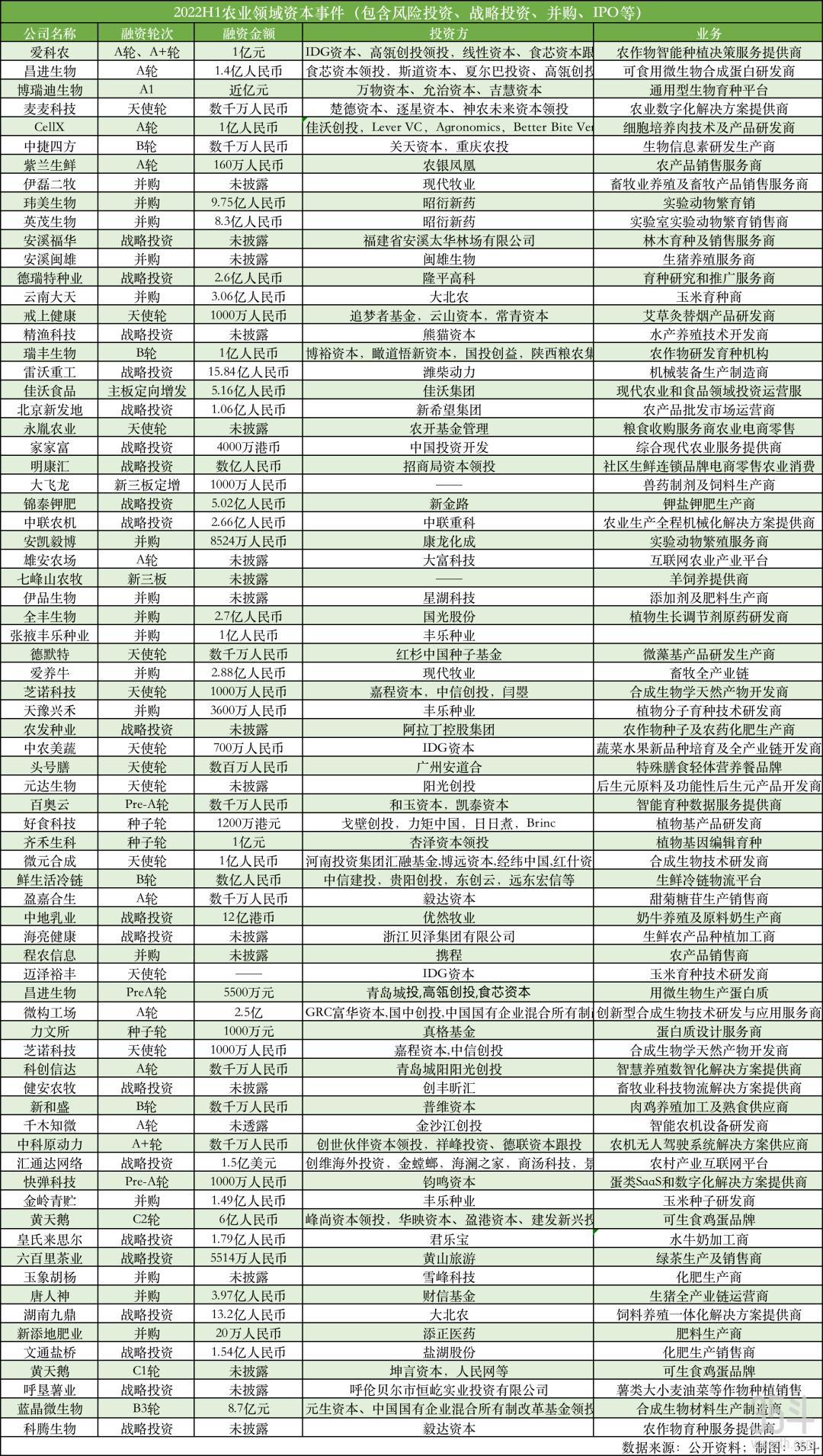 热闹了半年的农业大创投,究竟成果如何?35斗统计数据显示,截至2022年6月底,今年农业领域共有超74起投融资事件(包含风险投资、战略投资、并购等事件),流入资金超100亿人民币。