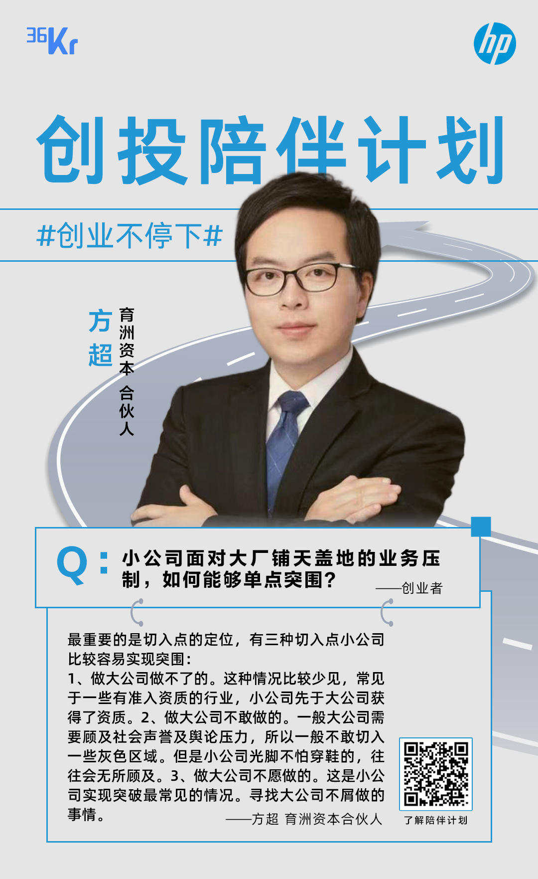 那么,如何让企业能够更好的与投资机构链接起来?这就是惠普战Club联合36氪共同发起全新“创投陪伴计划”的根本目的,通过一线投资机构的投资人为创业者答疑解惑,帮助创业者们加速成长。