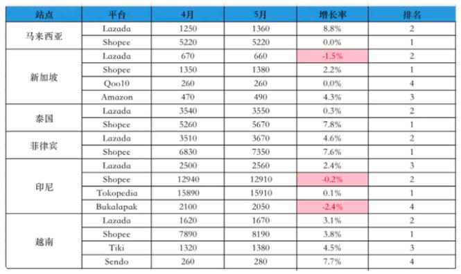 与此同时,Lazada 还需提防国内同行的竞争。近日,数据分析平台 Similar Wed 发布了 2022 年 5 月份各平台网站流量及相关数据,腾讯系的 Shopee 在越南、泰国、菲律宾、新加坡四地的网站总访问量超过 Lazada。