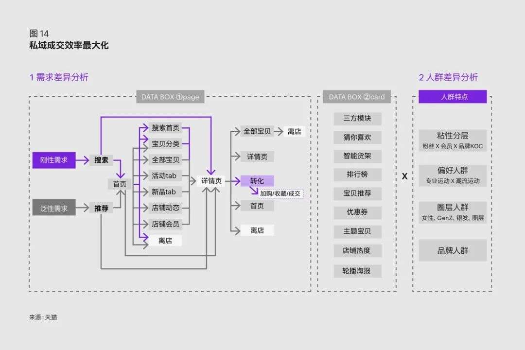 如何打造新的动线,将私域成交效能最大化?斯凯奇将重点放在了两个部分,一是消费需求分析,二是人群差异分析,而这两部分的构建都是为提升转化效率服务的。