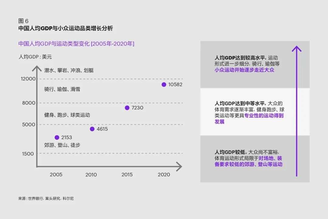 此后15年间,随着日本人均GDP逐年上升,冲浪、攀岩等运动也逐渐从小众运动变为大众运动。