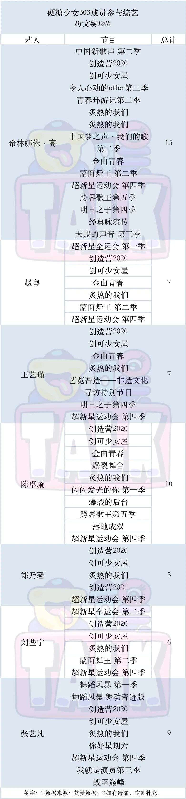 从NINE PECENT、火箭少女101、UNINE、R1SE、BlackACE、THE9、再到今天的硬糖少女303。