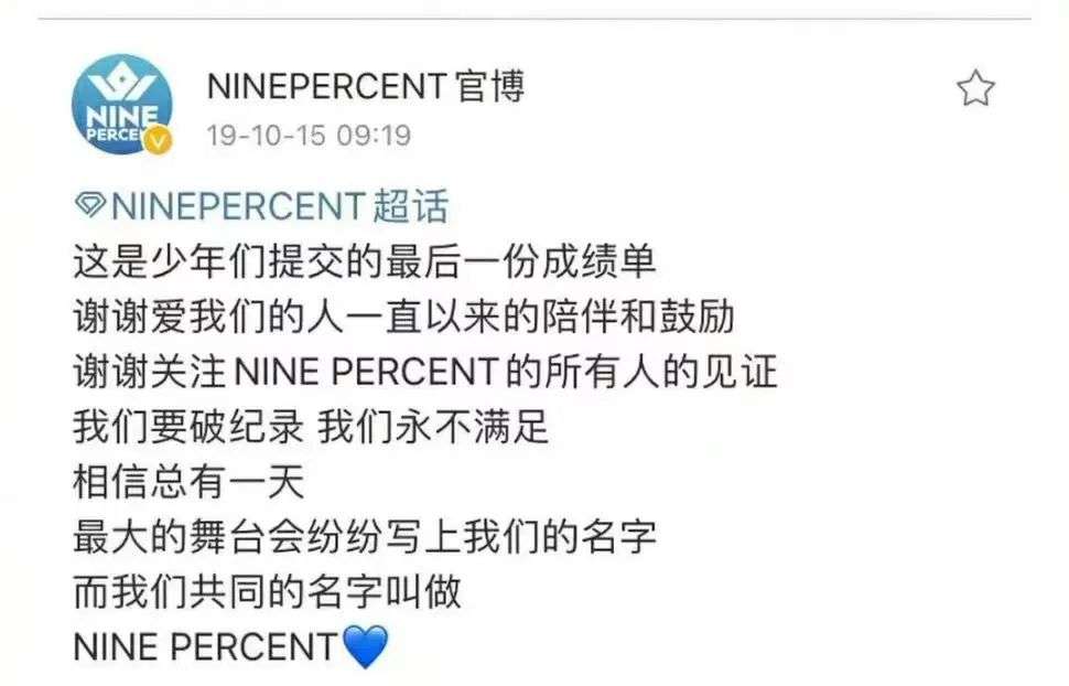 从2018年4月6日,NINE PERCENT成团那天开始,一个新的时代到来,无数追梦人和追星人的梦想和希望从那天开始。