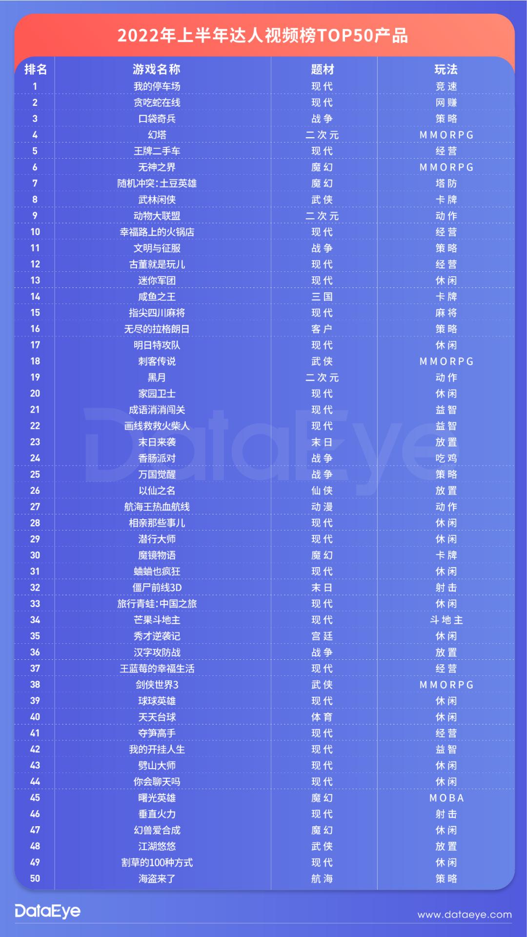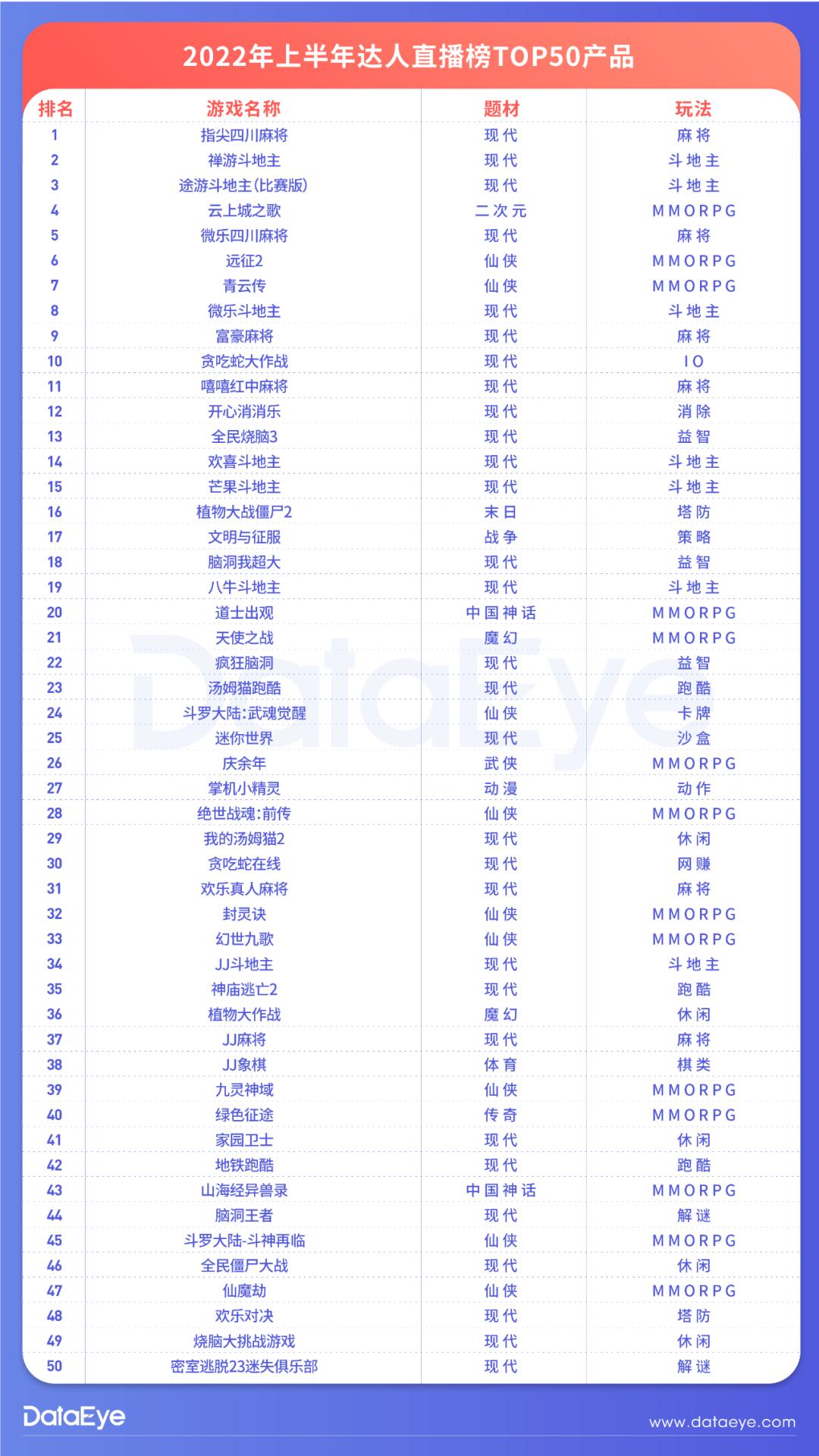 ②越来越多中重度游戏进入达人直播营销,根据2022年上半年直播榜TOP50显示,MMORPG类占比约为28%,说明中达人直播营销逐渐成为中重度游戏营销的重要手段之一。