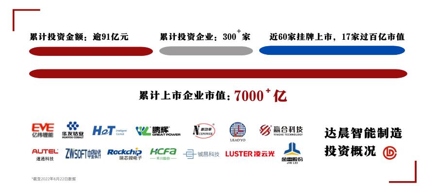 如今,达晨在智能制造领域,已累计投资超过91亿元,布局了300多家相关产业链企业,见证近60家企业挂牌上市,走出了如亿纬锂能、华友钴业、和而泰、鹏辉能源、利扬芯片、中望软件、瑞芯微等一批高端制造细分领域龙头企业,累计市值逾7000亿,过百亿市值企业更是有17家。达晨,一幅庞大的中国高端制造投资版图正徐徐展开。
