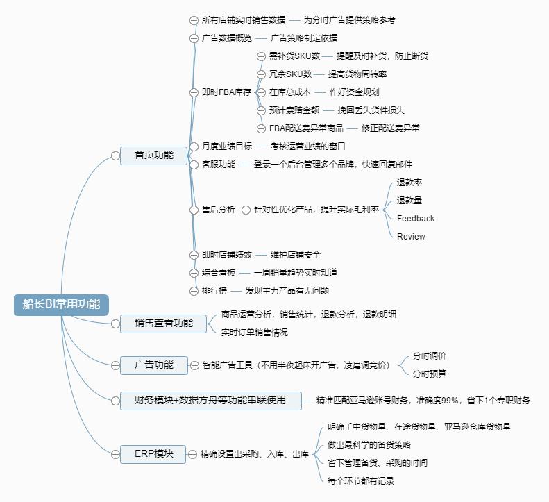 行业运营工具的高效运用,可以减少手工操作,解放重复性工作。如船长BI打通亚马逊全链路的业务数据。从商品、采购、仓储、物流、结算、报表本地化管理,到选品、销售、广告、FBA库存、财务、客服全流程数据化运营,再到数据报表自定义制作、报表数据智能化分析等数据自动化服务,帮助卖家全方位进行数据分析,快速定位异常店铺,及时发现问题商品和潜力商品,并做出优化调整。