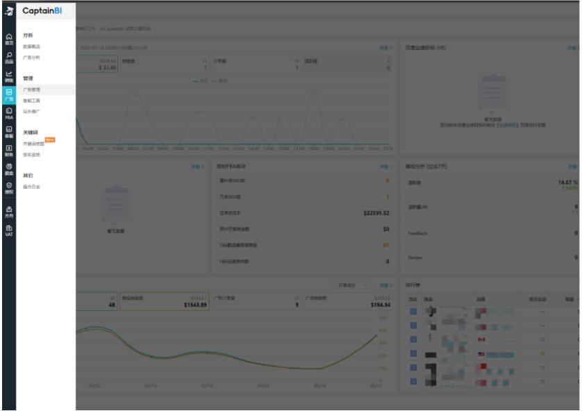 广告功能数据概览,船长BI自动同步所有广告数据的情况,且跟亚马逊后台是同步的,并且广告创建的方式跟亚马逊后台是一模一样的,所以我们所有的亚马逊广告都是通过这块直接创建。