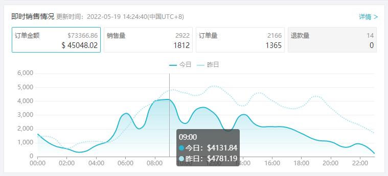 即订单金额、销量、订单量、退款量,以及各个时间段出单的情况,这个模块里面各个时间段出单情况是个很重要的数据,如果我们把每个产品的各个时间段的出单都统计出来,就基本上能有一个基础的分时广告策略。