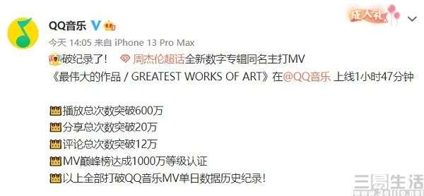 要说今天有什么事引发了几乎全网的“沸腾”,毫无疑问在多个平台首播的周杰伦新专辑同名主打MV排得上号。据各家公布的“战报”显示,其中QQ音乐上线1小时47分钟后,播放、分享、评论均打破该平台MV单日数据历史记录,快手上这一MV则仅用3小时播放量就已破亿,此外咪咕音乐、哔哩哔哩也都分享了这一MV的相关数据。