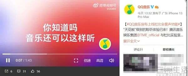 其中,腾讯音乐娱乐集团(下文简称为TME)今日宣布与杜比实验室达成战略合作,QQ音乐也成为首家支持杜比全景声的国内在线音乐平台。无独有偶,B站也在首发周杰伦新歌MV时表示,将上线Hi-Res(High Resolution Audio,即高解析度音频)无损音质功能。就连与周杰伦新歌“绝缘”的网易云音乐,也在一天前抢先发布了“空间音频 即将上线”的海报,试图刷一波存在感。