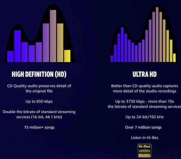 继Apple Music对订阅用户开放无损音乐后,亚马逊方面也宣布不再对Amazon Music HD(高清音乐服务)收取额外费用。并且在此之前,海外在线音乐平台领头羊Spotify也曾宣布将推出CD级别的HiFi无损音质订阅计划,不过至今“Spotify HiFi”仍处于画饼状态。