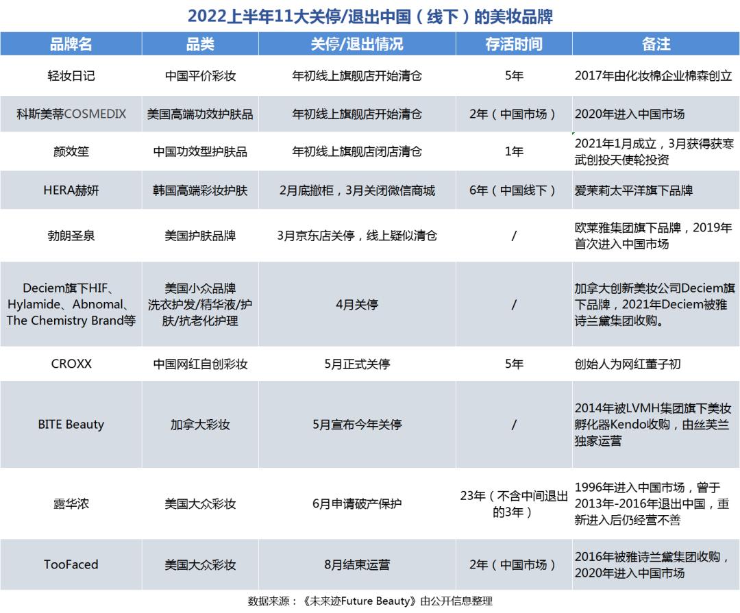 在2022年上半年疫情“返场”的严峻背景下,据《未来迹Future Beauty》不完全统计,不少于10个美妆品牌相继败退甚至“倒下”。
