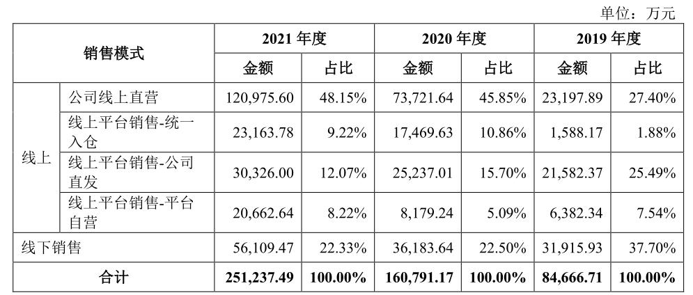 以线上作为主要营销阵地,认养一头牛的线上销售收入占比达到7成以上。2019年认养一头牛的线上销售收入为5.27亿元,到2020年增长到12.46亿元,2021年进一步增至19.51亿元,占收入比例从62.3%一路上升到77.67%。