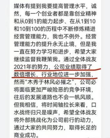 同时张涛表示,希望大家把时间轴拉长,“2021年公司业绩已取得数倍增长,行业地位进一步加强,未来三年内,只要当年收入达成公司目标,会将本人当年工资50%以红包形式发放给员工。”