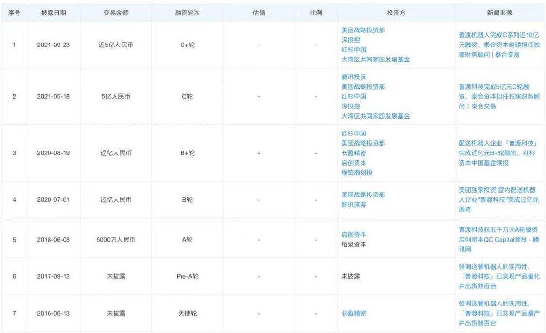 2、普渡科技曾一度是创业明星企业,成立七年来获超过7轮融资,融资总额超10亿元人民币,腾讯、美团、红杉中国等知名机构均在列;