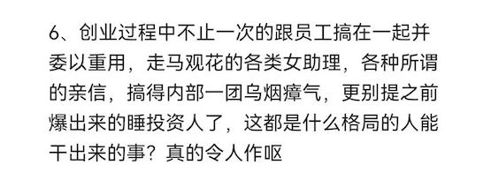这个“格局”问题在这次的裁员潮中又一次被网友抓住爆料,称CEO创业过程中私人关系混乱,搞得内部一团乌烟瘴气。