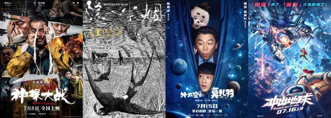 仅7月,韦家辉执导,刘青云、蔡卓妍主演的《神探大战》、「三大」主竞赛入围影片《隐入尘烟》、奇幻喜剧《外太空的莫扎特》、「中国神话」系列新作《冲出地球》、香港七大导演共同执导的《七人乐队》等均已定档。