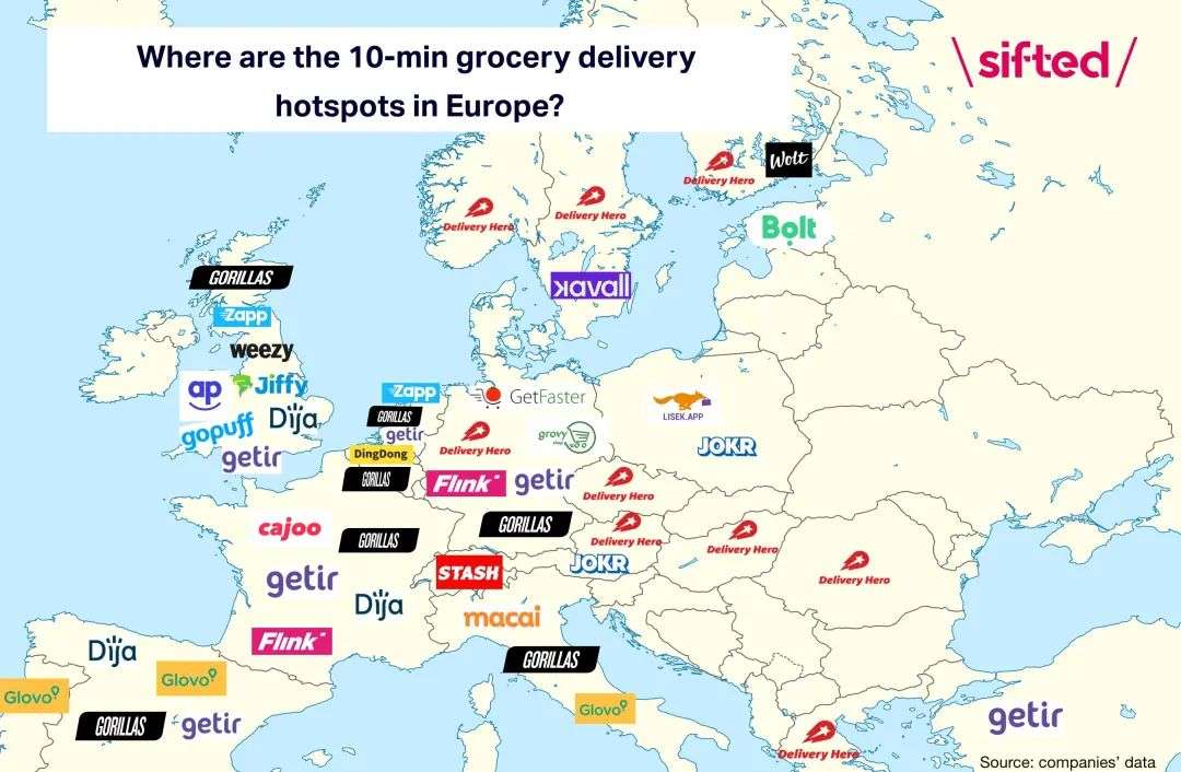 在去年才刚成立,想要成为“配送界亚马逊”的 JOKR 将15分钟送到家作为保证,品类不只包括生鲜杂货,超商内有的产品JOKR也都会提供,而且还与本地的食品酒水品牌合作上架独特的产品。成立几个月后JOKR的销售额就实现了每周15%的增长,新用户的留存率达到了50%,它在去年7月完成了由Balderton、GGV Capital和Tiger Global Management领投的1.7亿美元A轮融资后又在11月完成了2.6亿美元B轮融资,估值达到了12亿美元,自称有史以来最快成为独角兽的公司之一。