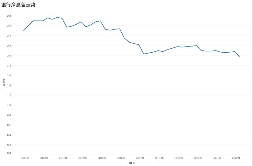 上图为我国银行业近十年的净息差走势情况,可以明显看到当下正处于最低点。归结其中原因,主要为: