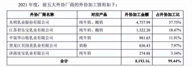 此外,认养一头牛的奶源并非全部都是“自有奶源”。招股书显示,光明乳业、君乐宝、中垦华山、贝因美、佳宝乳业等厂商均为其代加工厂。这也意味着,认养一头牛的部分产品为贴牌牛奶,独立生产能力还有待加强。